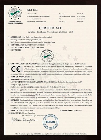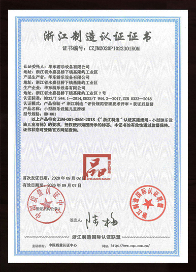 中国388vip太阳运动游乐的产品先后通过ISO国际质量管理、ISO环境管理、职业健康安全管理、安全生产标准化、知识产权管理体系、德国TUV、3C、SGS等国家和国际权威认证,公司先后被相关政府评为高薪技术企业、巨龙企业、知名商标、永嘉县“县长质量奖”、明星企业、高成长型企业等荣誉称号!